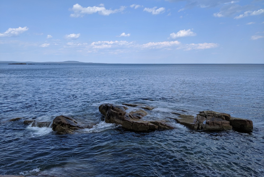 The darkness continues into the city air, the night creeping into day as summer tapers away. Out here the train accelerates and steadies, and two images alternatingly slide through the window: city streets run perpendicularly away from the tracks between slabs of apartment buildings facing each other across city streets between apartments across…. The streets are lined with lampposts and are bare but alive. Out of some unlit corners near the tracks pop bright red LED crosses and coffee cups and showtimes. And nailed high above everything is the moon, almost full, glowing softly behind invisibly thin clouds. The train accelerates again at the edge of the city, over the inky Harlem River. That Irish voice soars higher and higher and upon its wings something familiar rises up inside you.